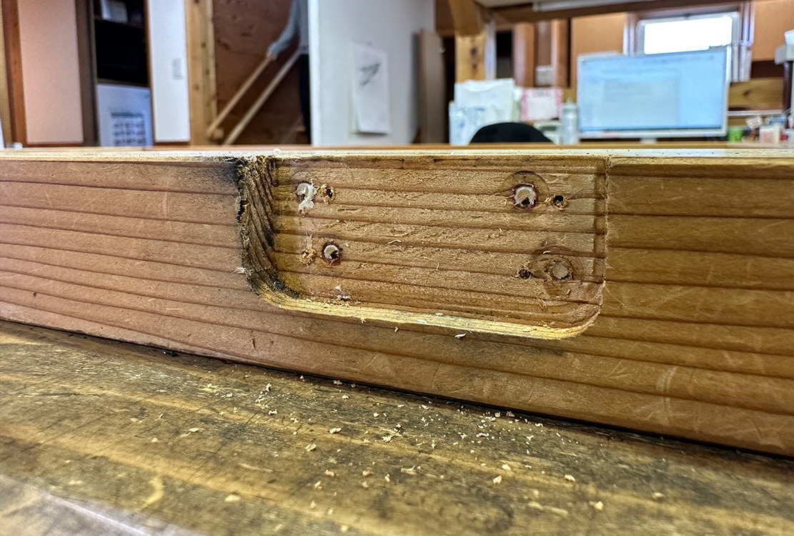 どうやら金物を取り付ける際に空いた穴に木工用ボンドを付けた爪楊枝を入れ、隙間を埋めていたようです。