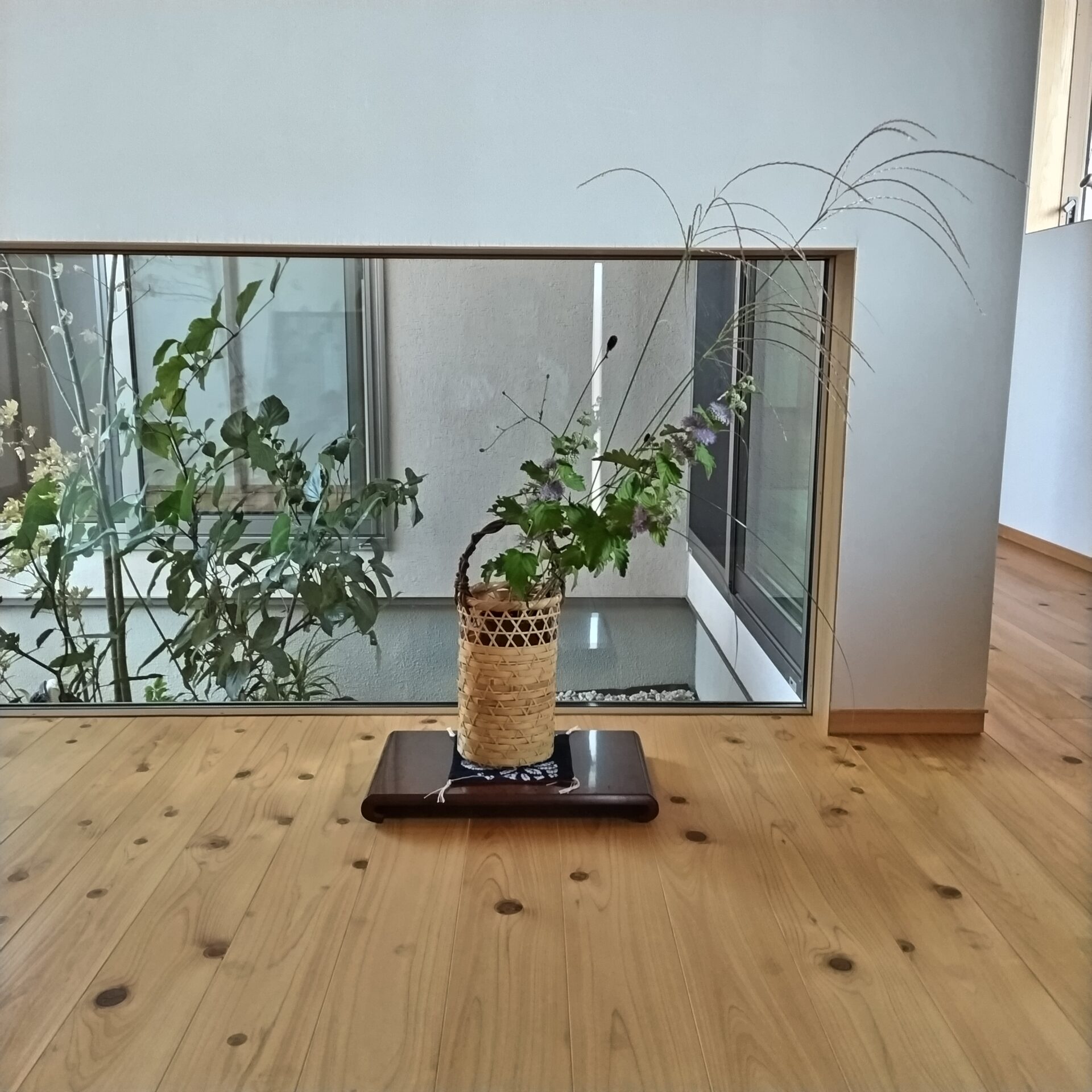 坪庭手前の玄関ホールには奥様がお花をしつらえて下さっており、毎日を楽しく暮らして頂けている様子が感じられ、私も嬉しい気持ちになりました。