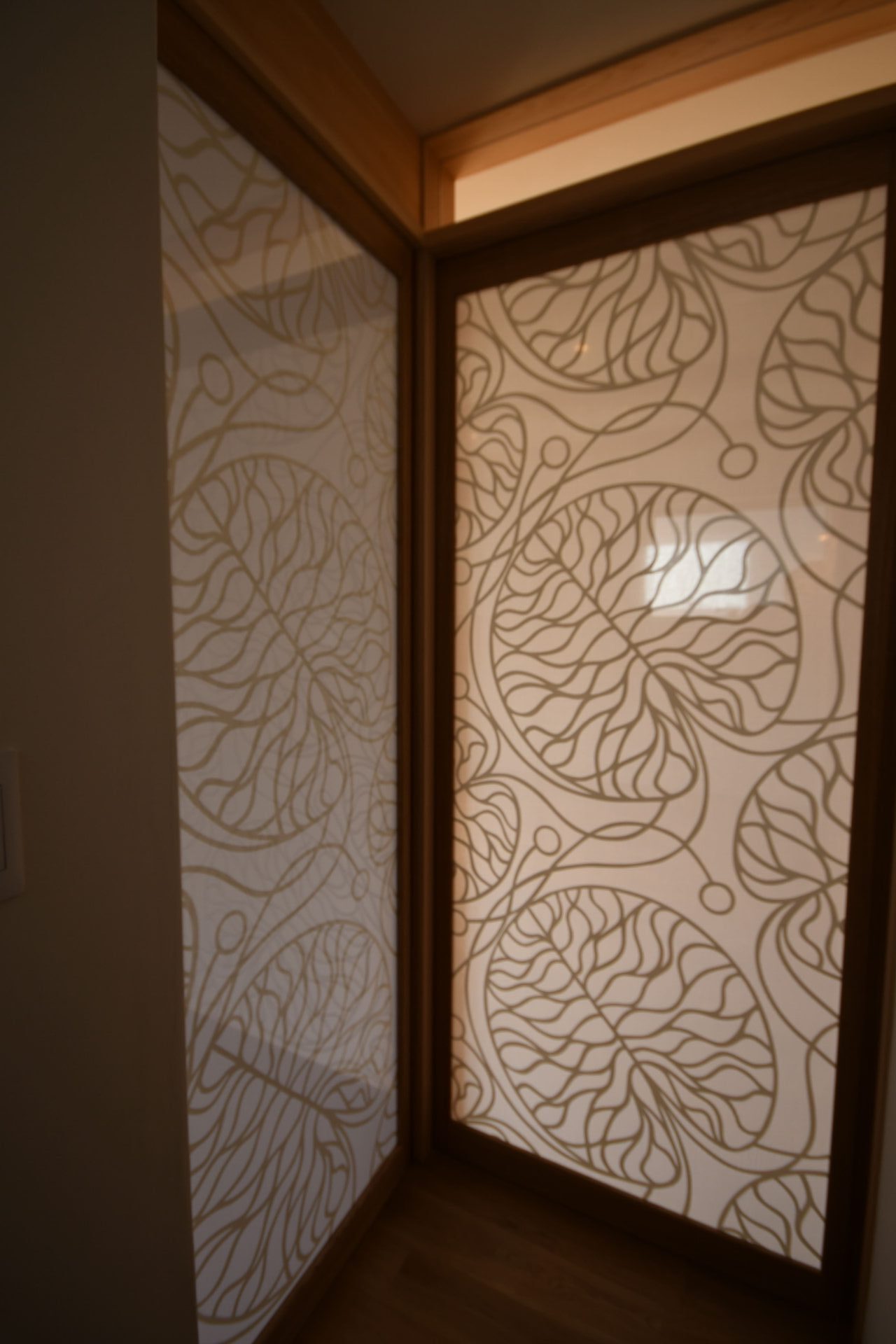 2024.05.28 / 最終更新日 : 2024.05.28 サン工房 スタッフ 私の家づくりVol.6 今回は、要望⑥「玄関仕切戸」です。 来客があった際、中が丸見えになるのはイヤ!でも玄関が暗くなるのもイヤ! という事で、ガラス戸にレースカーテン用の布を自分で調達して挟んでもらいました。 建具屋さんには、とても苦労おかけしましたが、とても気に入っています。 色付きもありましたが、飽きのこない白にして良かったです。 酒井雅代