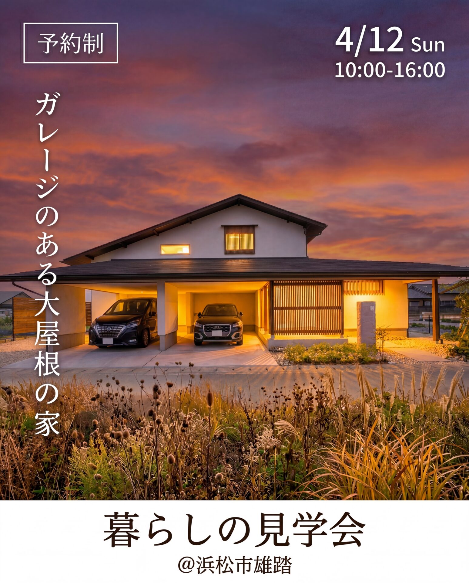4/12 (日) 暮らしの見学会/ ガレージのある大屋根の家