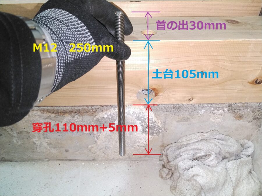 同様に、ホールダウン用アンカーボルトも打ち込みます。