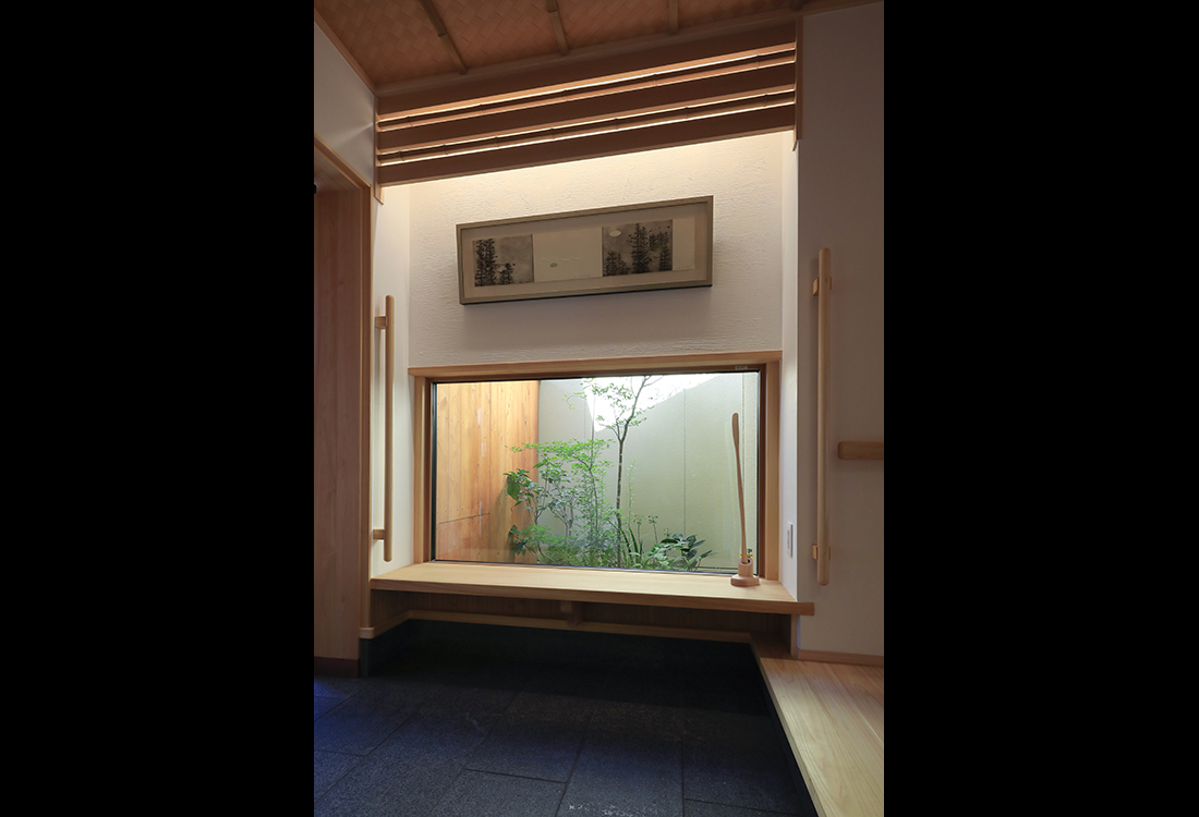 写真左手の玄関は、坪庭のある和の設えに改修した。